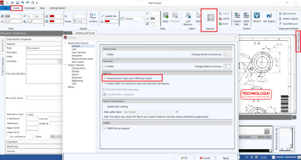 - On the General page under Add-ins, select the Measurements Input and CMM Data Import option > Apply > OK.