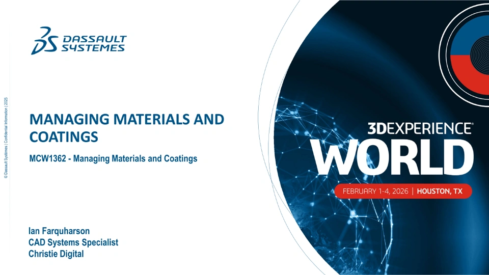 Discover how a company overcame its struggle managing materials and coatings by using the power of SOLIDWORKS! This session will include: design rules for materials and coatings, multi(body)-material parts, a Coating (macro) feature, and how Christie Digital manages materials and coatings.