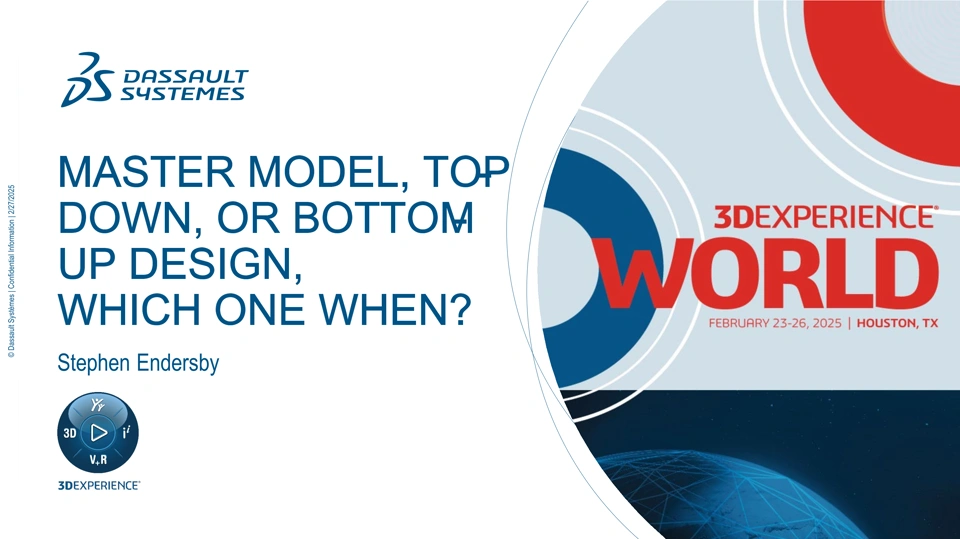 Choosing the right design approach can ease or hinder product development. In this presentation we take a look at the strength and weakness of Master Model, Top-Down and Bottom-Up design methods to determine what approach works best.