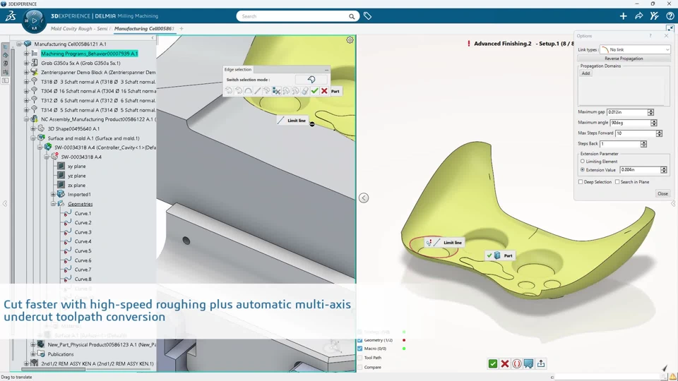- Complete 2.5 & 3-axis milling solution for molds, dies, and tooling, including specific cycles dedicated to hard material strategies for reducing machining times
