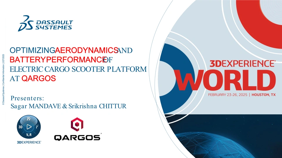 This session will explore the structural & thermal design challenges of electric vehicle batteries. This a crucial consideration for both safety and vehicle performance. In electric scooters, batteries must withstand vibrations, impacts and drops, while also managing thermal challenges from intense duty cycles. Physical tests can be costly and time-consuming, leading to safe but non optimal design solutions. By adopting SIMULIA simulation capabilities on 3DEXPERIENCE Platform, Qargos analyzed battery pack structural integrity of their electric scooter for vibration, shock & drop tests, as per AIS156 standards. Resulting in a faster time to market, improved performance and design confidence.