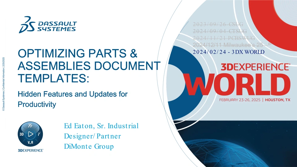 There have been a lot of critical improvements and neat features added to document templates over the years that you are likely missing out on. After you set up your templates, it’s easy to forget them – that’s the great thing about document templates for Parts & Assemblies. But it also means that we must revisit them every few years to be sure we aren’t missing out on anything that could help us work better in SOLIDWORKS. During this presentation, we’ll be talking about things in the feature tree, configuration properties, lights, etc. (in addition to the obvious document properties) that are important and sometimes critical to get right in our templates that can make us more productive and prevent errors. Base file size, the PDM trap, and other stuff you aren’t seeing anywhere else will also be discussed. We’ll also be opening the floor for everybody to share what they have in their templates that they can’t live without!