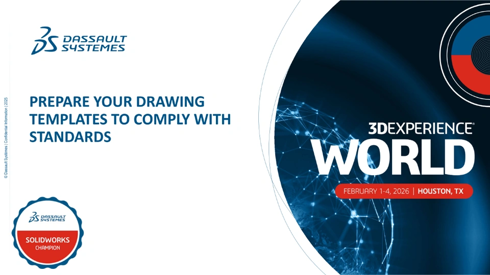Clear and consistent drawing templates are essential for accurate communication and efficient manufacturing. However, many teams still struggle with outdated or inconsistent templates that lead to errors, misinterpretations, and wasted time. This session will demonstrate how to create, customize, and manage SOLIDWORKS drawing templates that meet industry standards while streamlining your workflow. You’ll learn how to structure title blocks and borders, automate properties and revision control, and apply dimensioning and Geometric Dimensioning and Tolerancing (GD&T) practices consistently. We’ll also explore how to share and manage templates across teams using the 3DEXPERIENCE platform to ensure uniformity in collaborative projects. Attendees will leave with practical methods to build reliable, standards-compliant templates that save time and reduce mistakes.