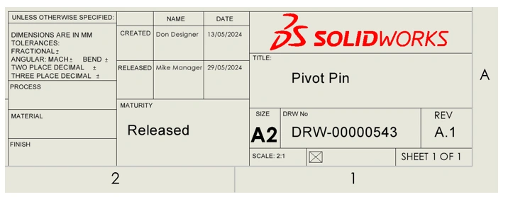Its common practice to display important information related to the revision and lifecycle on a SOLIDWORKS drawing. Therefore, the setup of a customer’s drawing templates to display lifecycle related information such as Maturity, Revision, Released Date etc. will need to be considered as part of every implementation of the 3DEXPERIENCE platform.