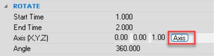 - Under Rotate, choose axis of rotation X, Y and Z. Enter value ‘1’ for the axis to make in use. Instead of choosing axis, we pick the axis of the actors. To do so click on Axis > press Alt to pick center of axis of the actor. Of course, for unscrewing we keep the default Angle of rotation 360.