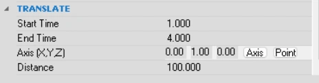 - For the Translate animation, we follow the same method to select axis for direction of translation as mentioned in Rotate animation. Also provided distance of translation.