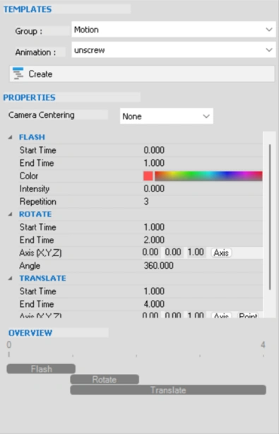 As the name says ‘Flash’, Highlights, ‘Rotate’ Rotates and ‘Translate’ Translates the selected actors. Let’s go in detail of each sub animations. Each sub animation has its own Start and End time. This means, the sequence of animations is customizable.