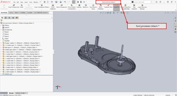 - Open the assembly in SOLIDWORKS.