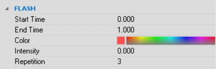 - For the Flash, we can define Color of highlight, Intensity of the emission and Highlight