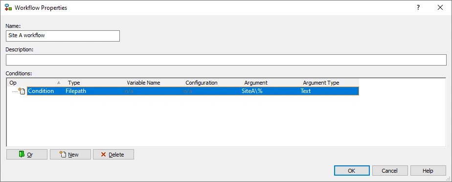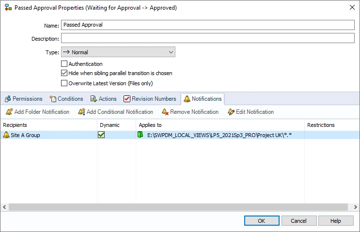 The easiest way to configure SOLIDWORKS PDM to use different workflows for each site is to use a condition on a folder structure as shown in the following image: