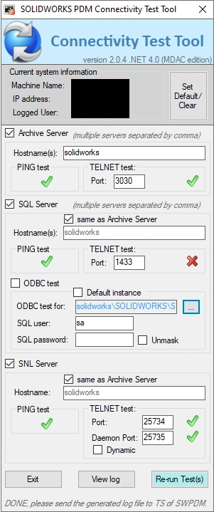 d) Testing SOLIDWORKS PDM System Connectivity