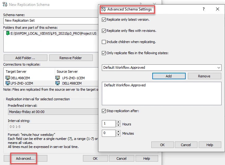 For help with diagnosing errors that you encounter when configuring replication settings, see the DS KB article QA00000106372 “What are the most common reasons that can cause a SOLIDWORKS® PDM file vault replication to fail and how do you troubleshoot it?”