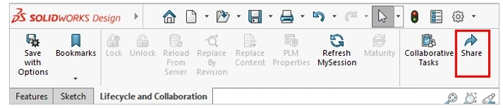 Share and Markup provides users with the ability to share their 3D designs with anyone, directly from SOLIDWORKS Design using the “Share” command on the Lifecycle and Collaboration tab.