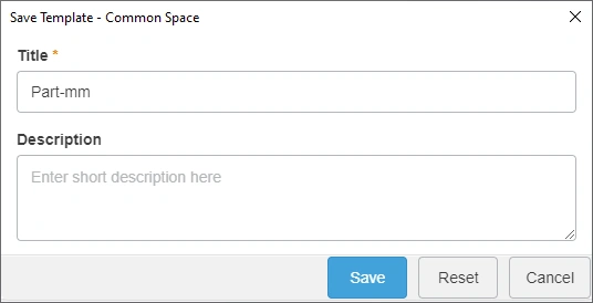 If a template file already exists in 3DEXPERIENCE, all Save commands open the Save Template dialog box shown in the next image. Silent save is not supported for templates.