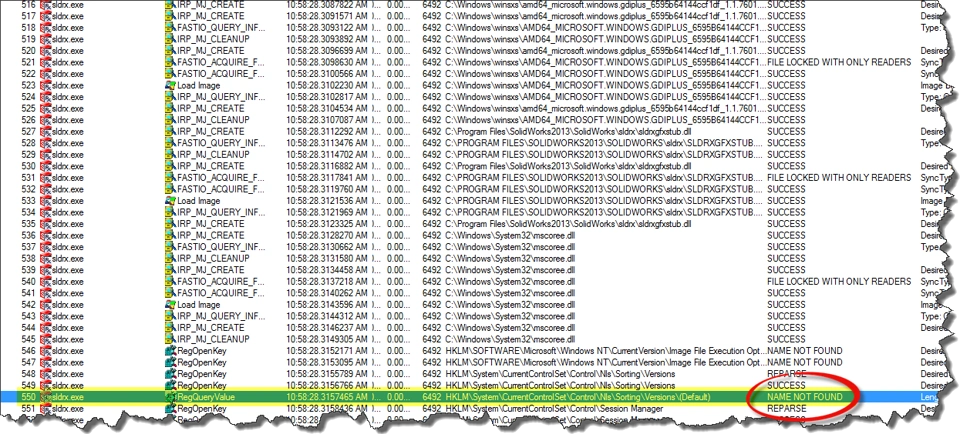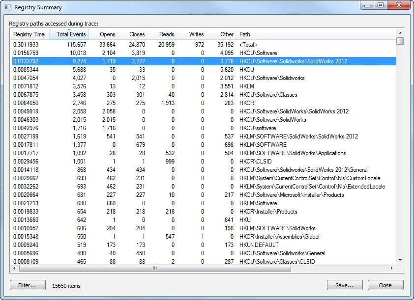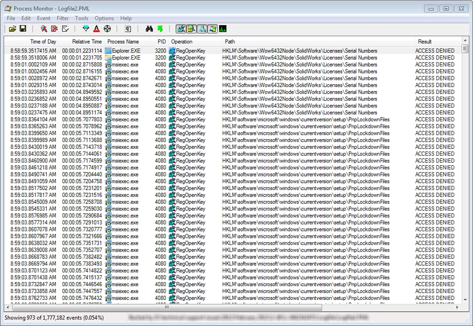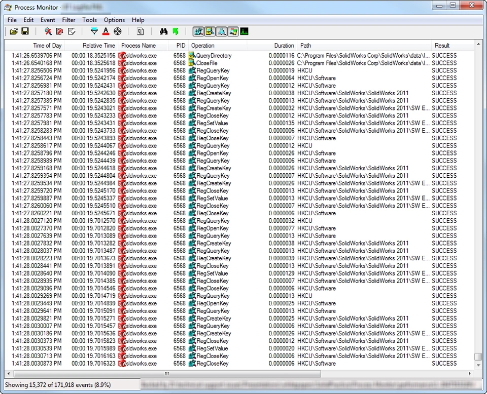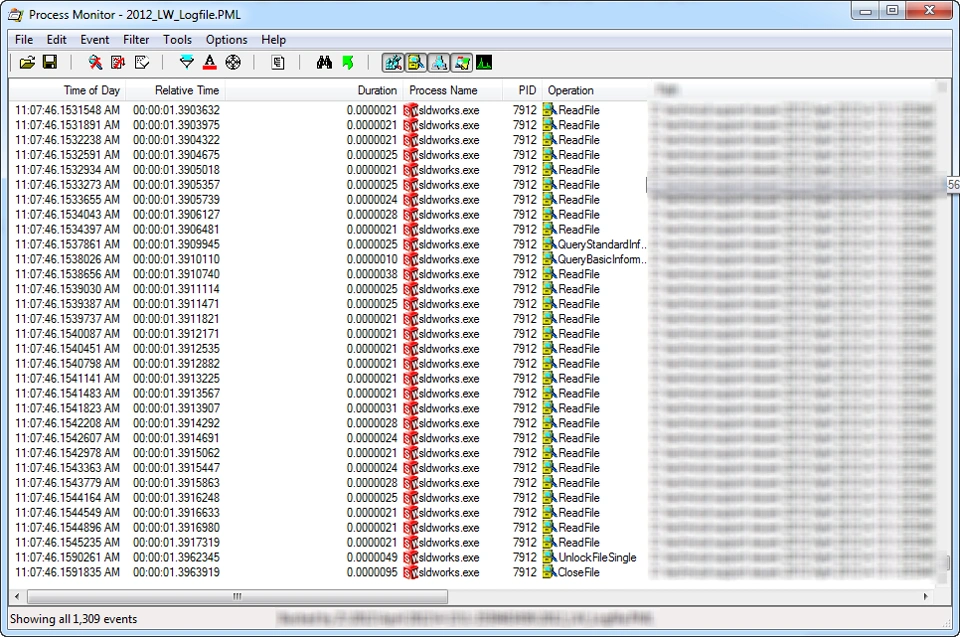 There are times when Process Monitor is useful for determining where and how SOLIDWORKS finds a particular file or registry value. In particular, Process Monitor can help you understand how a specific operation or workflow will potentially affect a customer.