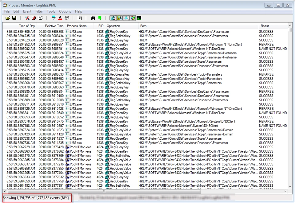 To create a baseline for comparison, capture a Process Monitor log while you perform the same workflow on your computer.