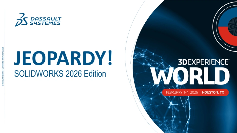 Back by popular demand! SOLIDWORKS Jeopardy is an interactive learning session modeled after the classic television game show and suitable for users of all skill levels. Answer trivia-style questions (and see demonstrations of the answers!) from a variety of categories covering both new SOLIDWORKS tools and features, along with older tips and tricks you may have never seen before, 3DEXPERIENCE platform tools, and more! Demonstrate your intellectual prowess, earn bragging rights, and learn something new along the way. Compete against fellow audience members or sit back and relax as we cover over 30 tips and tricks that are sure to be useful for everyone!