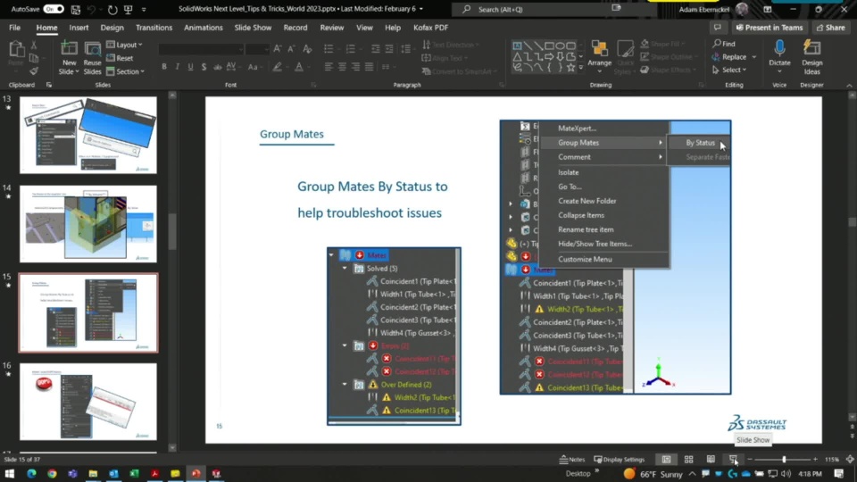 Adam Ebernickel, a native to northeast Tennessee, works and serves around his area. He has a degree in drafting and design, mechanical draftsman, technology, and certification in CSWA, CSWP, CSWP-DT, CSWP-W, CSWP-SM, CSWP-S, 3DEXPERIENCE. He has 20 years design/engineering experience. He has worked for Altec Ind. for eight years and has taught at Mayland in the Applied Engineering Department for five years and ConEd three years. He volunteers in the SOLIDWORKS Community as the WNC Asheville SWUG leader, Southeast Regional SWUG rep, SW Champion. In his spare time, he loves to ride his motorcycle, travel, camp, and boat with his wife, daughter, two sons, new daughter-in-law, and friends.