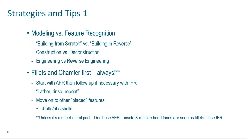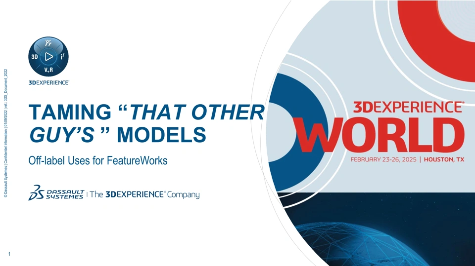 Every CAD department has one. You know, "THAT guy". His modeling approach can be best described as "butcher knives & Bondo!". Any attempt to make even a simple revision on one of his parts makes you complicit in a deepening web of bad decisions & questionable modeling practices. A model rebuild is desperately called for, but can be tedious & time-consuming. How can we bring order to such chaos? FeatureWorks! Most users associate it with imported/dumb-lump solids (IF they know about it at all). First off, a quick intro/refresher to core FeatureWorks functionality. Next, we'll pivot to some "BKNB method" case studies from my own career, converting them to stable, easily edited models. Aside from learning a new tool (FeatureWorks), take-aways for beginners include the importance of design intent & sensible feature creation. Intermediate/expert users will benefit from gaining tips & techniques for innovative, "off-label" ways of capturing design intent & taming problematic models.