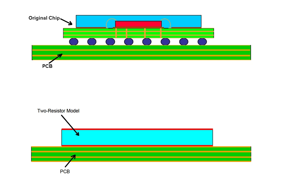 Therefore, in a two-resistor model, instead of considering the exact geometry package (chip), the model is considered to consist of three nodes: