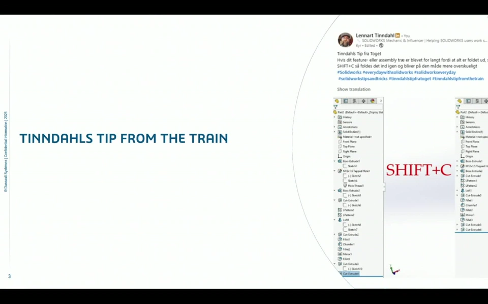 For the past eight years, I’ve been sharing SOLIDWORKS tips, tricks, and trivia on my daily train commute: short, practical insights designed to make everyday work easier. In this session, I’ve gathered the top 30 tips: a fast-paced mix of classics, hidden gems, and brand-new discoveries. We’ll cover the entire workflow, from sketches and part modeling to assemblies and drawings, so you can discover practical shortcuts, troubleshoot more effectively, and explore lesser-known features that simplify both modeling and documentation. Each tip is designed to be simple, actionable, and immediately useful, giving you techniques you can apply the very next time you open SOLIDWORKS. Whether you’re just starting your SOLIDWORKS journey or you’ve been on board for years, you’ll walk away with time-saving methods, smart best practices, and new tricks that make your design work smoother and more enjoyable. And don’t worry, you don’t have to be an expert to board this train.