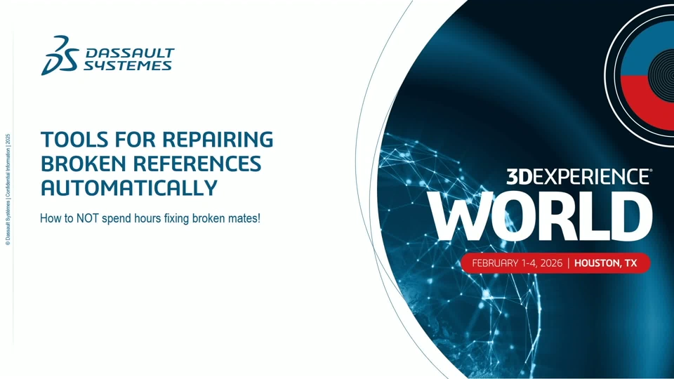 Whether you have been using SOLIDWORKS from its inception or are only just now developing those skills, you have likely come across a broken sketch reference or assembly mate. With each new release of SOLIDWORKS, there are more and greater abilities we can use to automatically repair these. When I first heard they introduced auto-repair mates in SOLIDWORKS 2023, I was blown away because this single feature could free up almost 20% of my work week. Every year since, this feature has continued to improve, and it is now joined by several other automatic repair tools to further assist in saving time during rework. Join me as I explore with you what these new features can do and see how it has evolved in the last few years. We will be looking at some example cases to point out some best practices when using these commands.