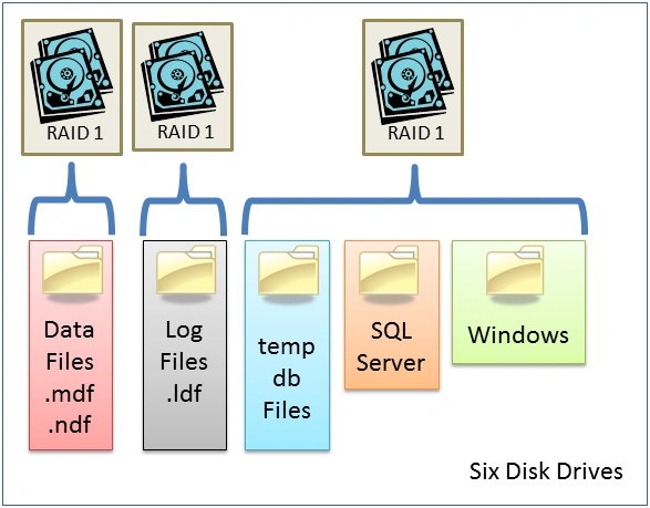 * Add another RAID 1 array and create data files on that array for each filegroup on the system.