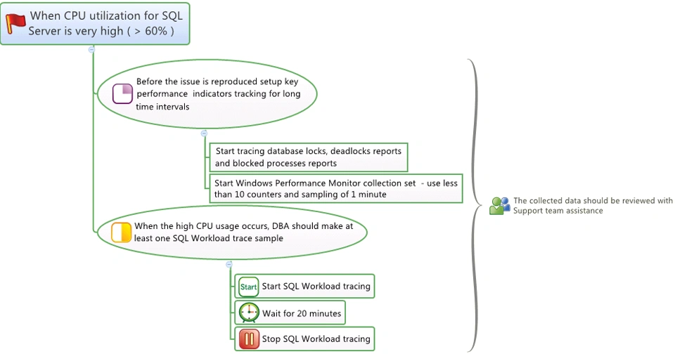 For large databases and especially for databases with tens or hundreds of active users, the recommendation is to maintain an average CPU utilization under 50%. This helps prevent a SQL Server from being affected by SQL CPU performance bottlenecks that occur when CPU utilization approaches 75%. At this point, many PDM client applications become sluggish. On very large vaults, this might lead to other side effects such as database deadlocks and blocking chains.
